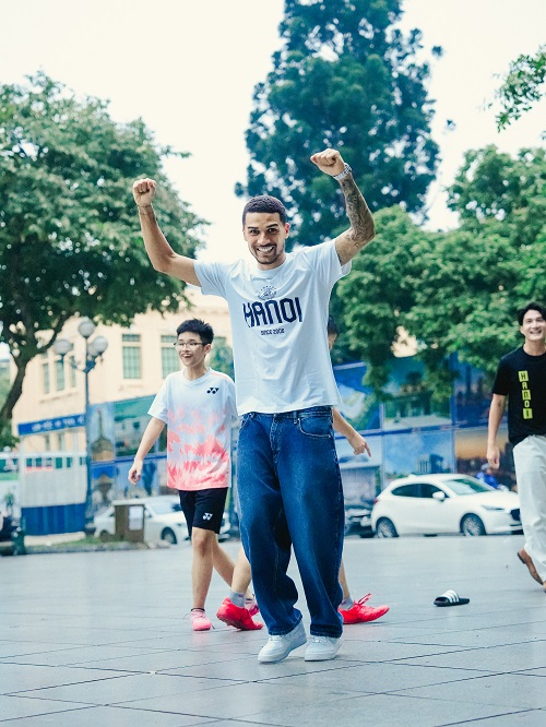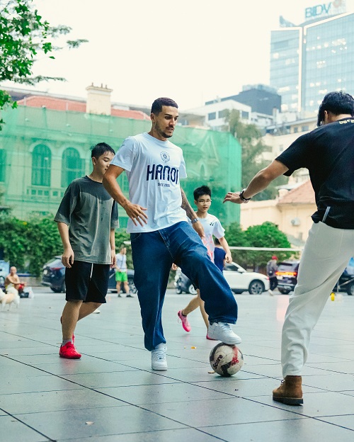Trước ngực (phối đen): chữ HANOI đặt dọc cách điệu, đi kèm biểu tượng Khuê Văn Các ở ngực trái – biểu trưng của văn hiến Thăng Long.