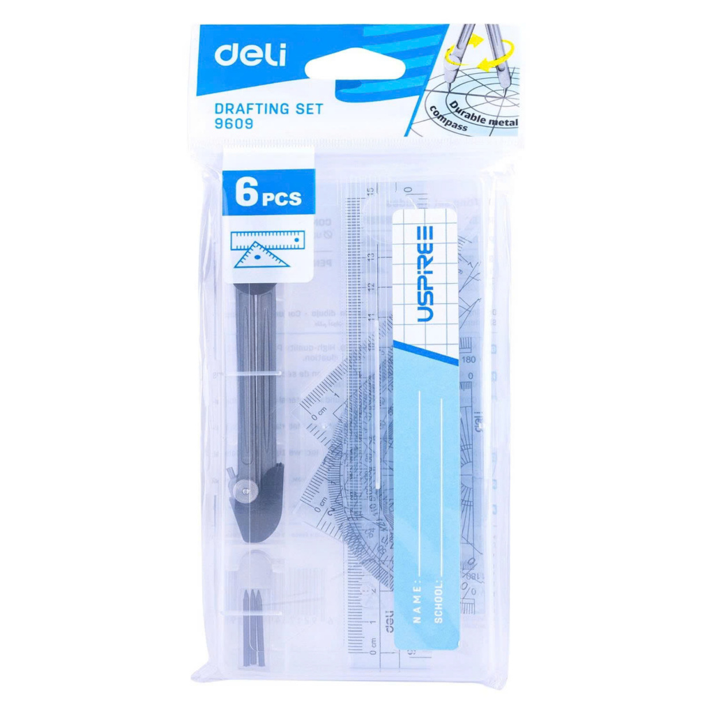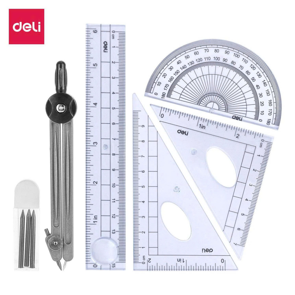 Bộ dụng cụ học sinh Deli 9609 là bộ dụng cụ học tập cơ bản và tiện dụng dành cho học sinh, sinh viên trong quá trình học tập, đặc biệt là môn Toán và các môn học liên quan đến hình học. Bộ sản phẩm bao gồm đầy đủ các dụng cụ cần thiết giúp người dùng dễ dàng thực hiện các thao tác đo, kẻ và vẽ hình một cách chính xác.