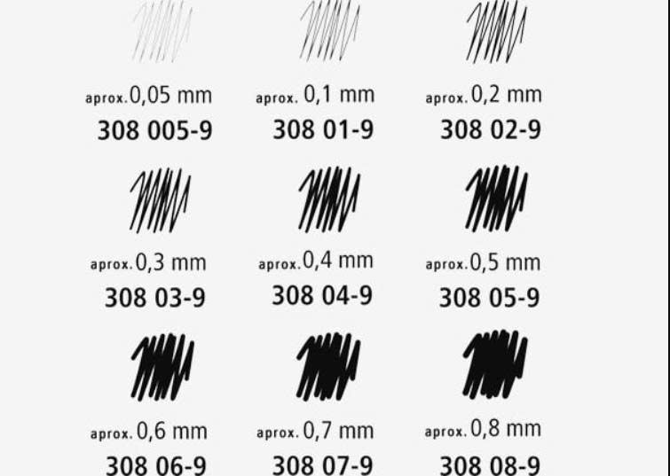 Ngòi bút được làm bọc ngòi kim dài với 12 cỡ nét chính xác khác nhau từ 0.05 – 2.0 mm rất tiện dụng để kẻ với thước chữ, viết, vẽ kỹ thuật, thiết kế, phác thảo trên bản vẽ với độ chính xác đúng theo tiêu chuẩn quốc tế…. Do chất mực không thấm nước và bên màu , ngòi viết êm nên bút cũng được dùng để ký văn bản…