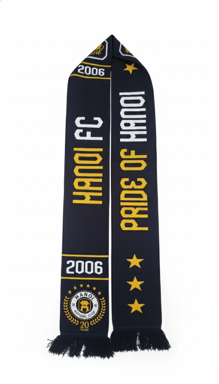 Không chỉ là một chiếc khăn, đây là biểu tượng của đam mê, tự hào và tình yêu bóng đá Hà Nội. Mỗi lần mang khăn là một lần bạn đồng hành cùng đội bóng trong chặng đường 20 năm rực rỡ.